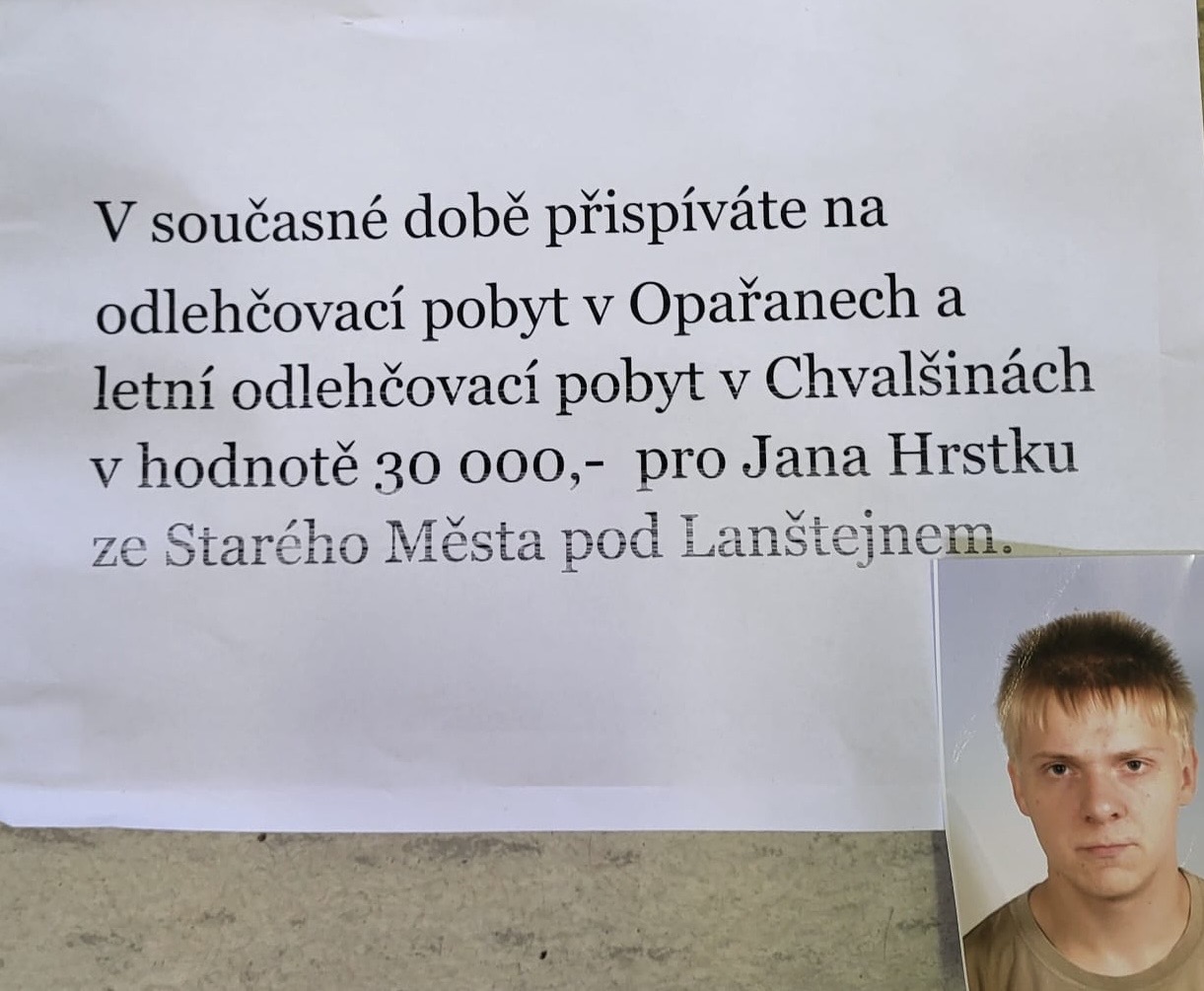 - Kubík Janči obdarován částkou 30000,- Kč na speciální postel